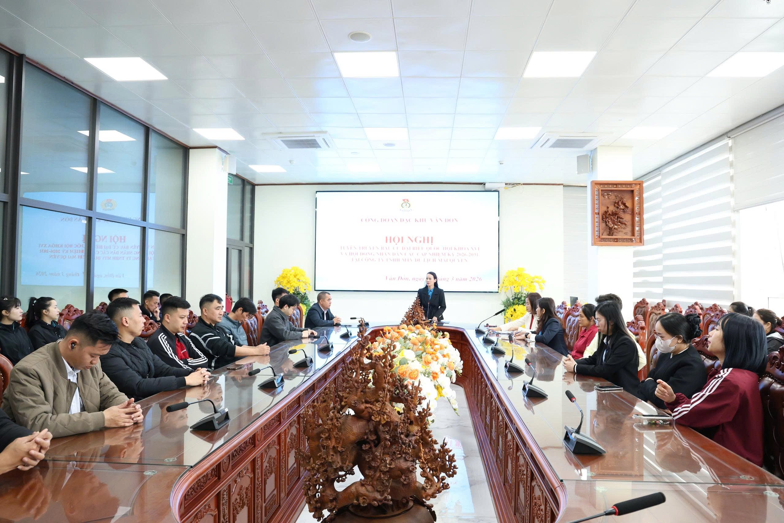 Ngày 11/3, Ban Chấp hành Công đoàn đặc khu Vân Đồn tổ chức Hội nghị tuyên truyền, mạn đàm về tiểu sử những người ứng cử đại biểu Quốc hội khóa XVI và đại biểu HĐND các cấp nhiệm kỳ 2026-2031 dành cho đoàn viên công đoàn của Công ty Ngọc trai Taiheiyo Shinju và Cảng Quốc tế Ao Tiên. Đồng chí Lê Thị Nết – Phó Chủ tịch Ủy ban MTTQ đặc khu, Chủ tịch Công đoàn đặc khu Vân Đồn chủ trì hội nghị.