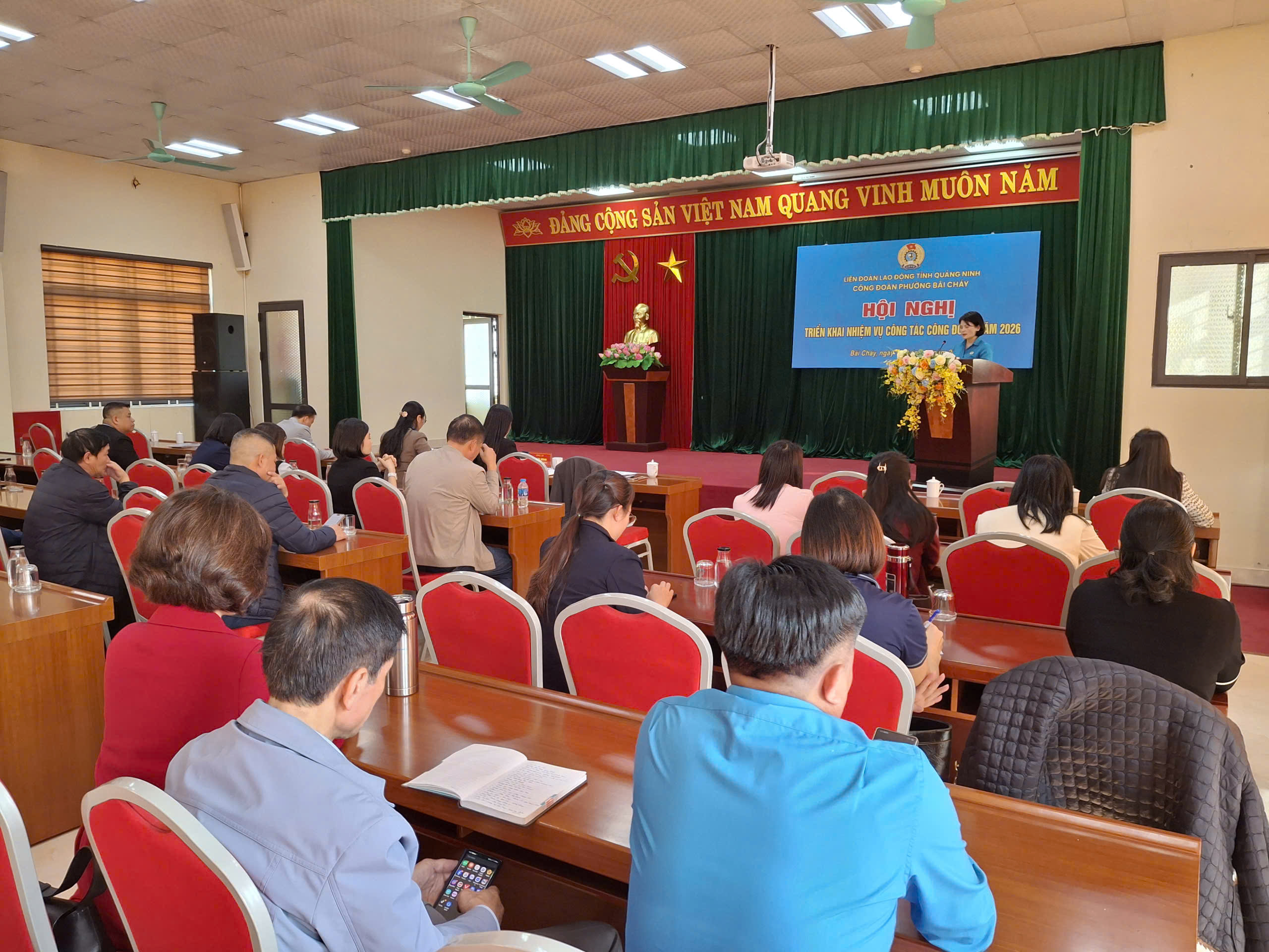 Chiều ngày 10/01/2026, Công đoàn phường Bãi Cháy tổ chức Hội nghị triển khai nhiệm vụ trọng tâm năm 2026. Đại diện lãnh đạo Liên đoàn Lao động tỉnh Quảng Ninh, Đảng uỷ phường Bãi Cháy dự chỉ đạo hội nghị. Đại diện các công đoàn cơ sở có đông đoàn viên tham dự hội nghị.