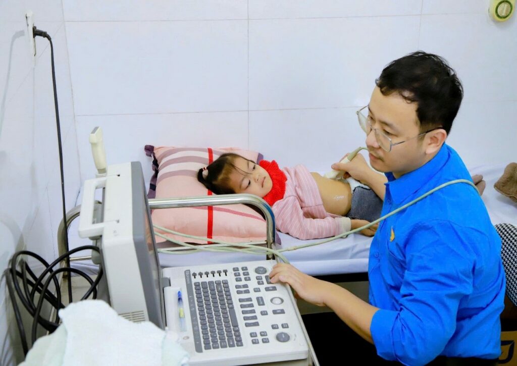 Đội ngũ y, bác sĩ thực hiện việc thăm khám cho công nhân và con công nhân
