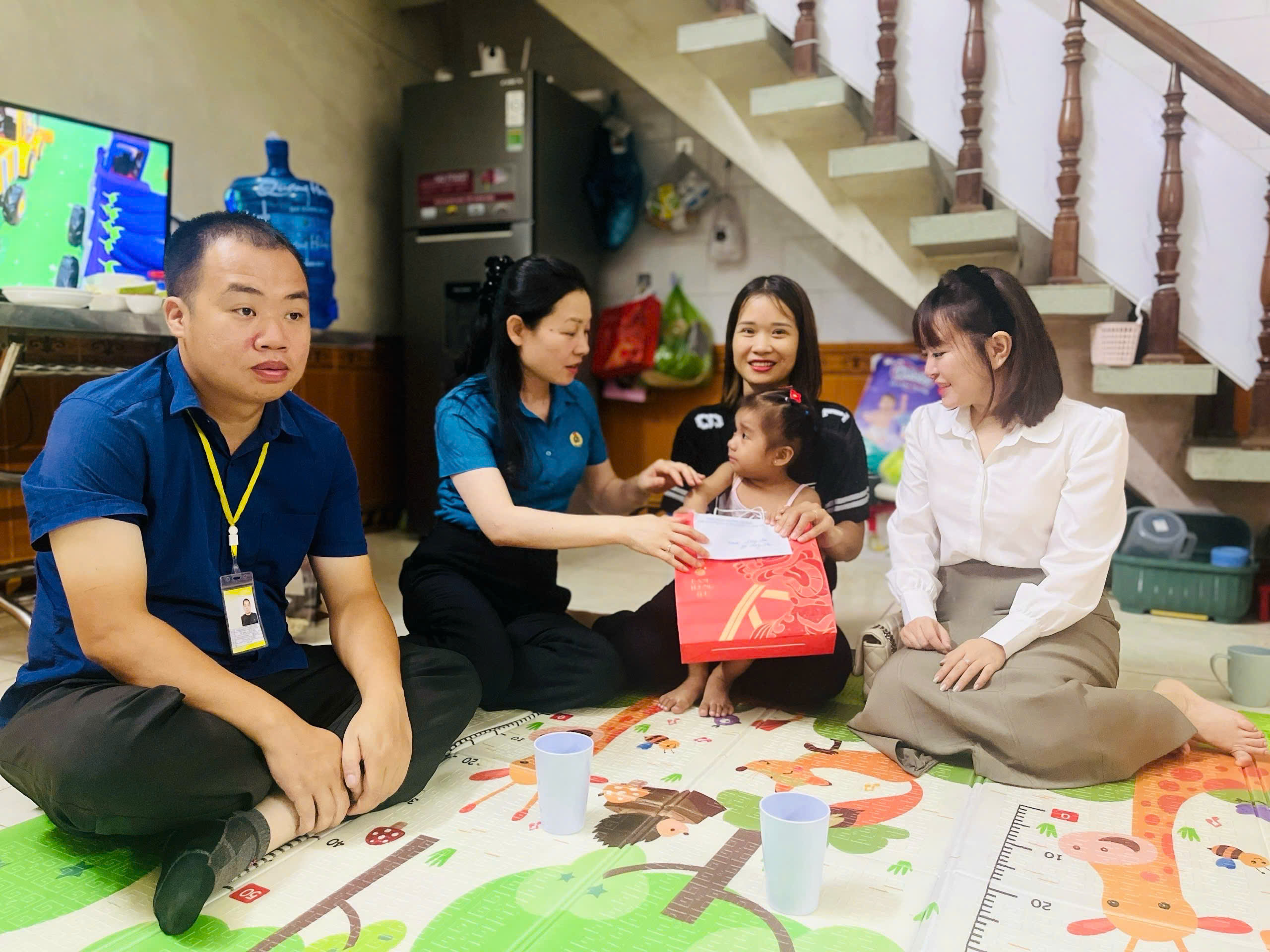 Đ/c Bùi Thị Hà, Phó Chủ tịch MTTQ phường, Chủ tịch CĐ phường thăm hỏi, tặng quà trung thu cho gia đình đoàn viên khó khăn