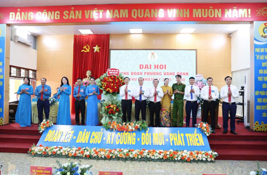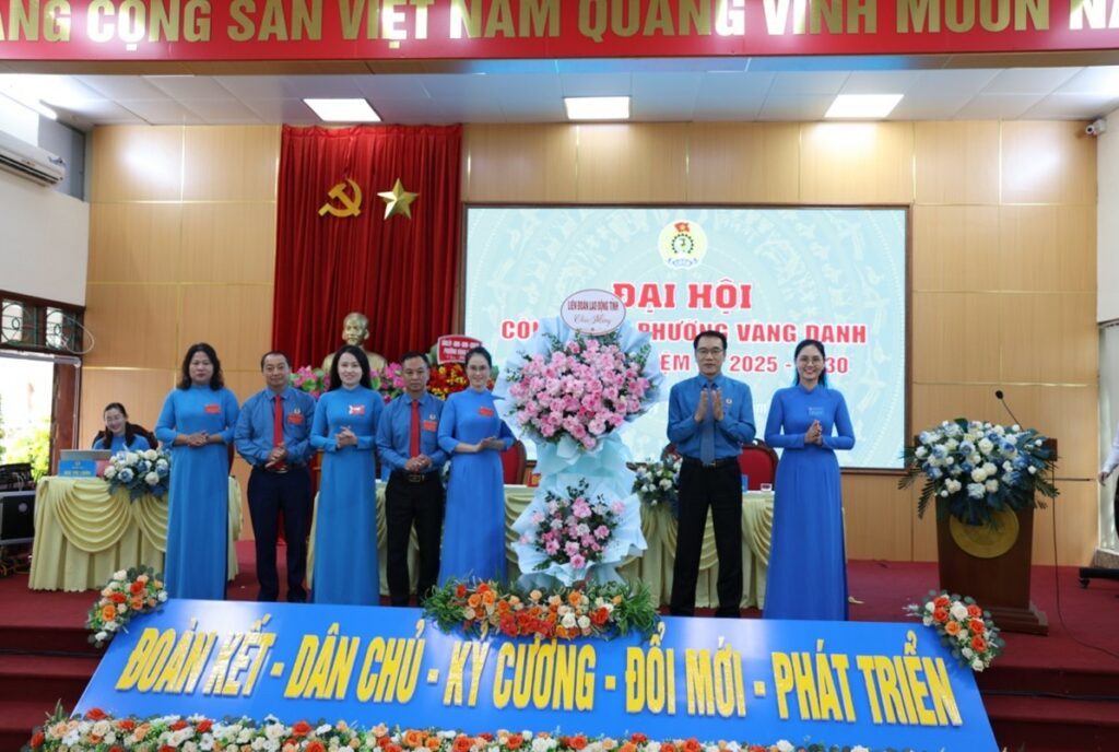 Phát biểu chỉ đạo tại Đại hội, đồng chí Tô Xuân Thao – UV BCH Tổng Liên đoàn Lao động Việt Nam, Ủy viên BCH Đảng bộ tỉnh, Phó chủ tịch Ủy ban MTTQ Việt Nam tỉnh Quảng Ninh, Chủ tịch LĐLĐ tỉnh Quảng Ninh và đồng chí Hoàng Quốc Trung, Bí thư Đảng ủy, Chủ tịch HĐND phường Vàng Danh ghi nhận đánh giá cao tinh thần chủ động cũng như những kết quả nổi bật trong triển khai hoạt động công đoàn và phong trào công nhân trên địa bàn. Lãnh đạo LĐLĐ tỉnh và lãnh đạo phường đề nghị các cấp công đoàn cần triển khai sâu sắc, toàn diện, thực chất các hoạt động công đoàn, tập trung thực hiện các nhiệm vụ cốt lõi, trọng tâm, mang lại lợi ích thiết thực cho người lao động; xây dựng niềm tin, tạo sự gắn kết giữa người lao động với tổ chức công đoàn để Công đoàn thực sự là tổ chức của người lao động, do người lao động và vì người lao động. Tổ chức công đoàn tích cực phối hợp với chính quyền, các cơ quan, tổ chức trong hệ thống chính trị phường và người sử dụng lao động để chăm lo, đại diện bảo vệ quyền, lợi ích chính đáng của người lao động. Song song với đó, cần tiếp tục coi trọng và đổi mới hơn nữa nội dung, cách làm trong việc tuyên truyền, vận động, giáo dục, bồi dưỡng cán bộ, công chức, viên chức, công nhân, người lao động nâng cao trình độ chuyên môn, kỹ năng nghề nghiệp, ý thức chính trị, giác ngộ giai cấp, lòng yêu quê hương, tự hào, tự tôn, góp phần xây dựng đội ngũ công nhân phường ngày càng lớn mạnh.