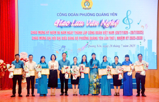Chiều 28/7, tại Nhà Văn hóa phường Quảng Yên, Công đoàn phường Quảng Yên đã tổ chức chương trình “Giao lưu văn nghệ” chào mừng kỷ niệm 96 năm ngày thành lập Công đoàn Việt Nam (28/7/1929 – 28/7/2025), chào mừng Đại hội đại biểu Đảng bộ phường Quảng Yên lần thứ I, nhiệm kỳ 2025–2030.