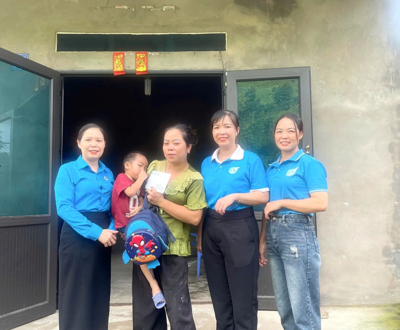 Công đoàn xã Tiên Yên phối hợp trao đỡ đầu trẻ em có hoàn cảnh khó khăn
