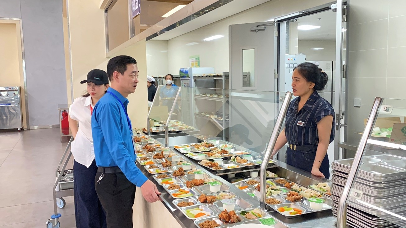 Không chỉ chú trọng nâng cao chất lượng bữa ăn ca cho người lao động, công đoàn công ty luôn quan tâm, chủ động đề xuất với chuyên môn và người sử dụng lao động về việc đầu tư cải thiện điều kiện sinh hoạt cho người lao động. Qua đó, khu vực nhà ăn được bố trí khang trang, sạch sẽ; nhân viên y tế được phân công túc trực trước, trong và sau giờ ăn nhằm theo dõi, bảo đảm vệ sinh an toàn thực phẩm và kịp thời xử lý các tình huống phát sinh.