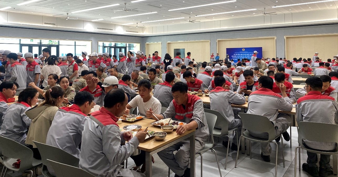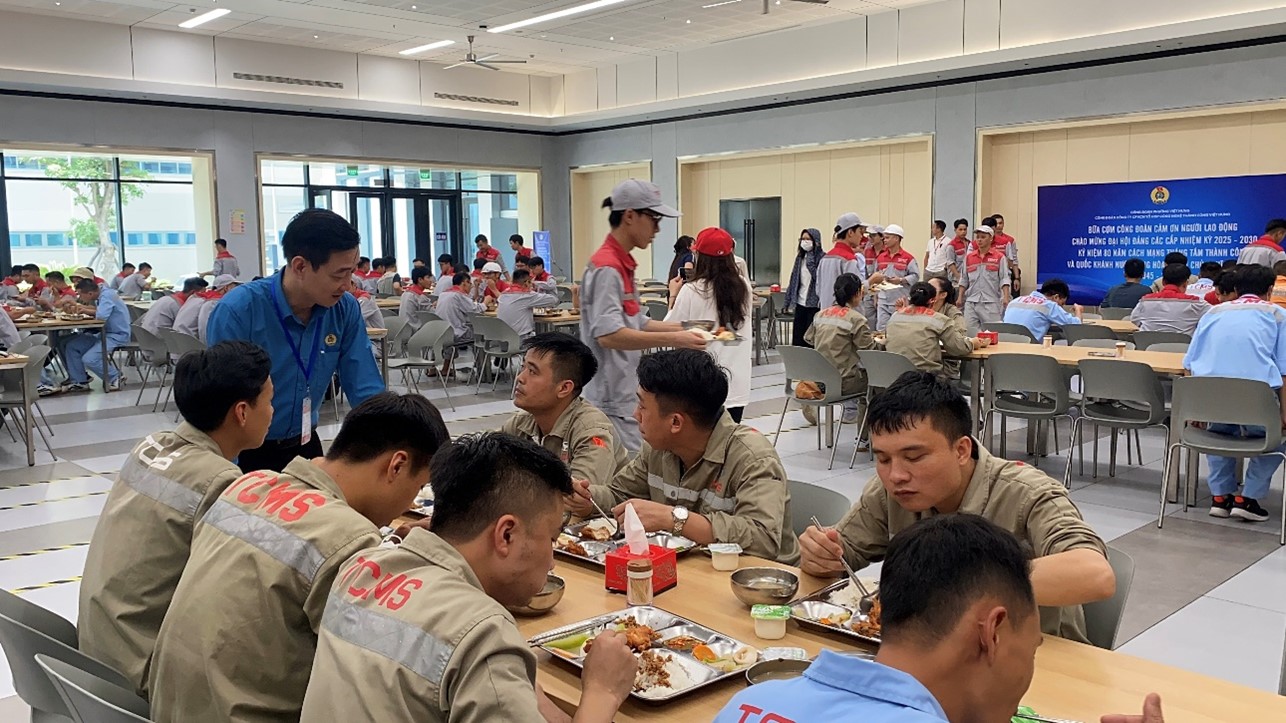 Thiết thực chào mừng Đại hội Đảng các cấp nhiệm kỳ 2025 – 2030; kỷ niệm 80 năm Cách mạng Tháng Tám (19/8/1945 – 19/8/2025) và Quốc khánh nước Cộng hòa xã hội chủ nghĩa Việt Nam 02/9. Trưa ngày 02/8/2025, thực hiện hướng dẫn của lãnh đạo Công đoàn phường Việt Hưng, Công đoàn cơ sở Công ty CP KCN tổ hợp công nghệ Thành Công Việt Hưng đã tổ chức chương trình “Bữa cơm Công đoàn – Cảm ơn người lao động” cho 421 cán bộ, đoàn viên, người lao động đang làm việc tại công ty.