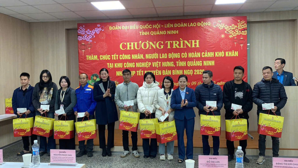 Ngày 9/2, đồng chí Đỗ Thị Lan, Phó Chủ nhiệm Ủy ban Văn hóa – Xã hội của Quốc hội, Đại biểu Quốc hội khóa XV tỉnh Quảng Ninh, đã đến thăm, chúc Tết và trao quà cho công nhân, người lao động có hoàn cảnh khó khăn đang làm việc tại Khu công nghiệp Việt Hưng, phường Việt Hưng, tỉnh Quảng Ninh. Cùng tham gia đoàn công tác có đồng chí Đặng Thị Kim Chung, Phó Chủ tịch Liên đoàn Lao động tỉnh Quảng Ninh, Trưởng ban Công tác Công đoàn tỉnh.