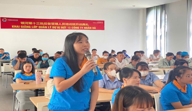 Chị Nguyễn Thị Nhàn, Phó Chủ tịch Công đoàn Công ty TNHH Công nghệ – kỹ thuật Ngân Hà phát biểu