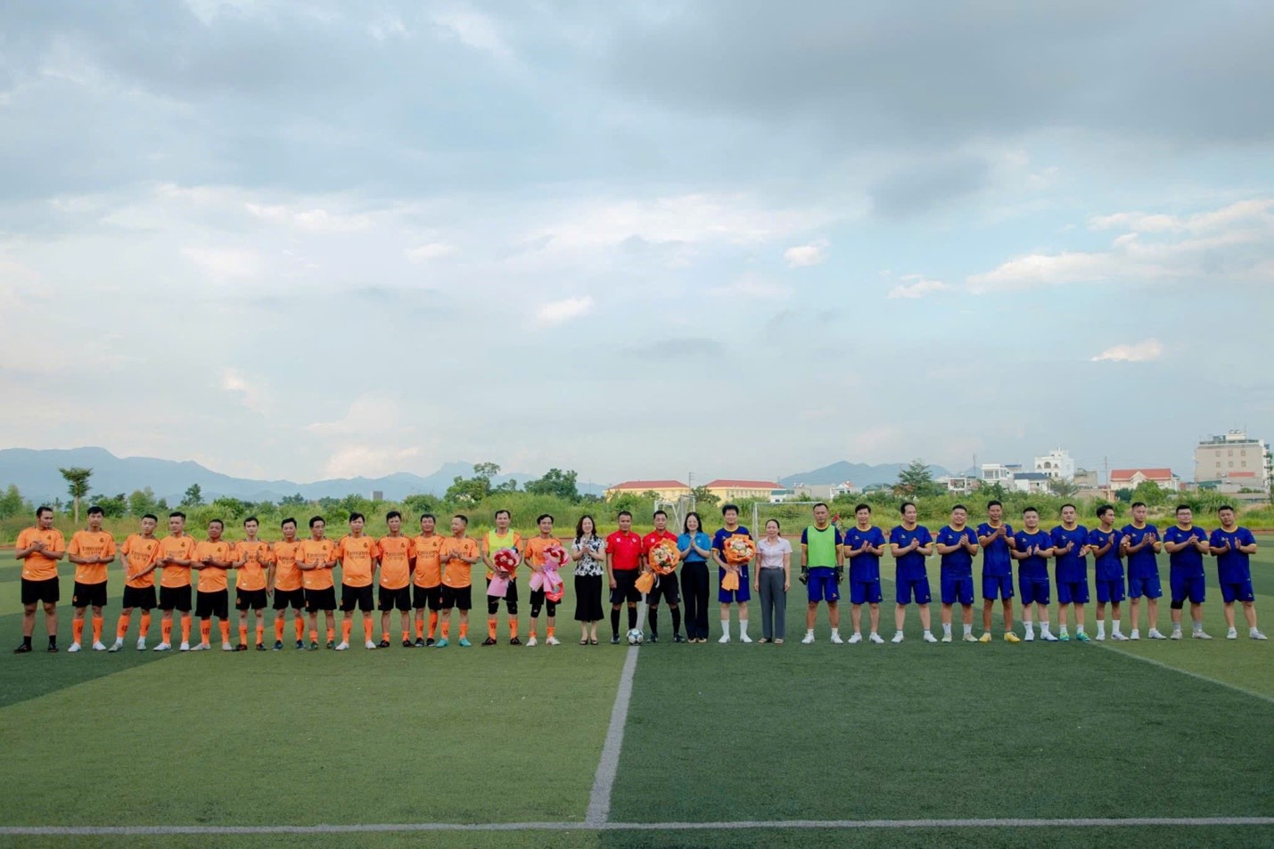 Ban tổ chức Chương trình tặng hoa và cờ cho 2 đội bóng tham gia giao lưu