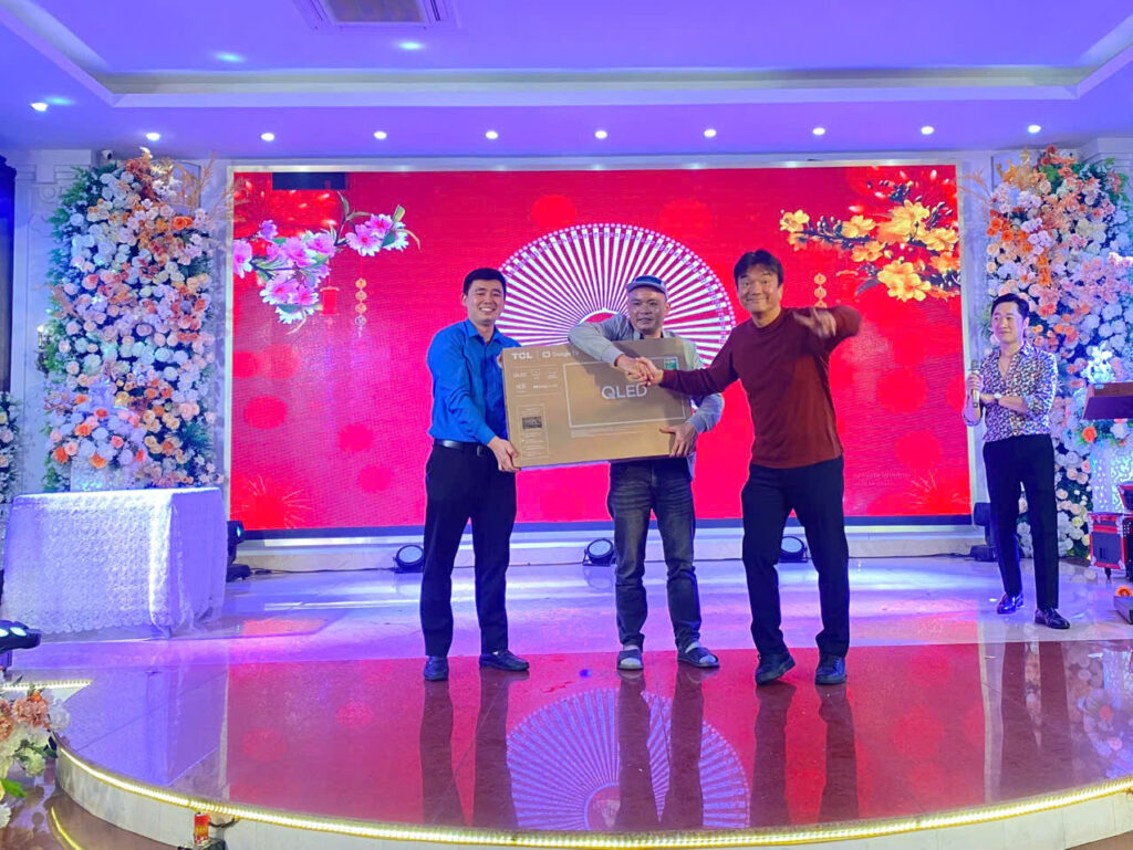 Tại chương trình, Công ty đã khen thưởng 10 tổ, đội sản xuất xuất sắc năm 2025, ghi nhận tinh thần trách nhiệm, sự nỗ lực của tập thể người lao động trong hoạt động sản xuất, kinh doanh. Chương trình còn có các mini game, hoạt động quay số trúng thưởng với tổng giá trị 30 triệu đồng, trong đó giải thưởng cao nhất là chiếc tivi trị giá 5 triệu đồng, tạo không khí vui tươi, sôi nổi. Thưởng Tết năm 2026 của Công ty đạt mức bình quân 16 triệu đồng/người, cao nhất 79 triệu đồng, thấp nhất 7.900.000 đồng, góp phần giúp người lao động yên tâm đón Tết.